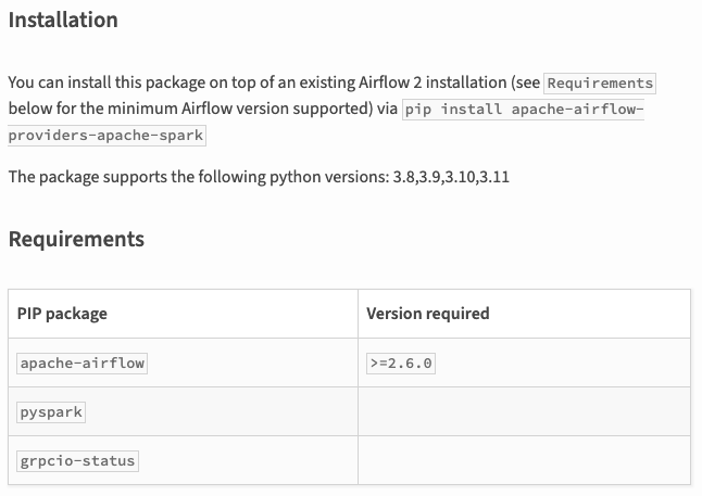 위 추측으로 이것이 팩트인지를 찾기 위해 pyspark, airflow provider 관련 Document 를 찾아보기 시작했다.