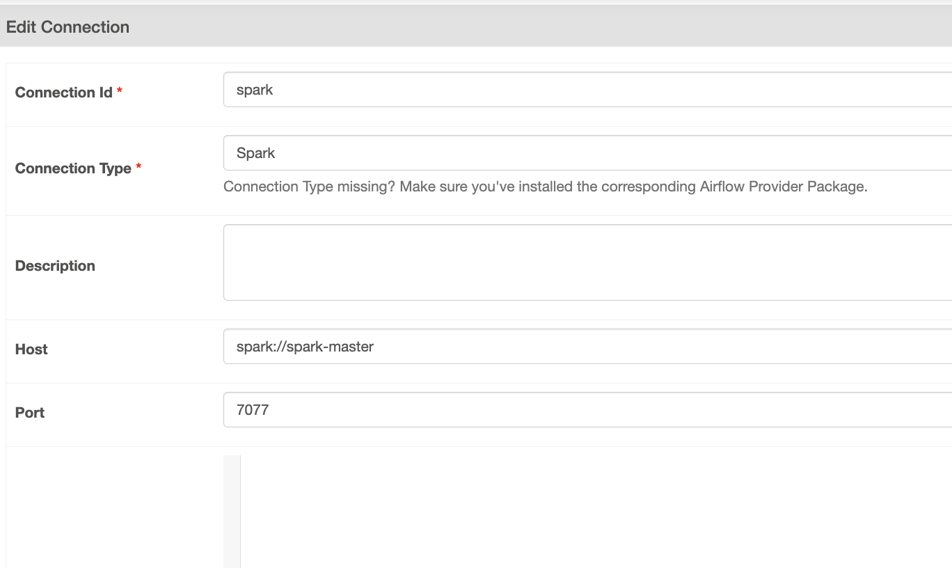 추가가 완료되면, airflow web UI에서 Admin > Connections > [+] 버튼을 눌러서 Spark Master와의 Connection를 추가해야 한다.